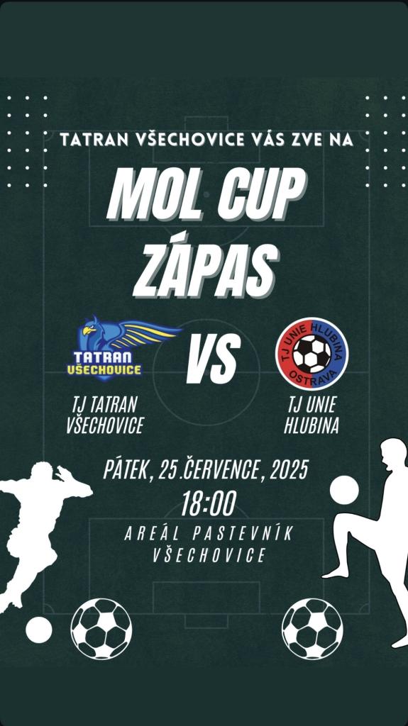 1. kolo MOL Cup v pátek 25. 7. 2025 od 18:00 hod. TATRAN Všechovice vs. TJ Unie Hlubina Ostrava
